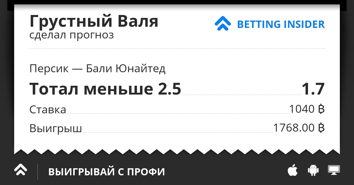 Чемпион нынешнего розыгрыша поедет в гости к середняку, в заключительном туре. Прошлую игру Бали Юнайтед слили с разгромом, причём дома. Видать заигрывают запасных игроков, это просто догадки. Будет ли реабилитация? Сомневаюсь, но проиграть не должны. Персик дома неплохо играет и захотят взять хоть очко против чемпиона в последнем туре. Думаю что будет ничья, либо 1:1, либо унылые 0:0