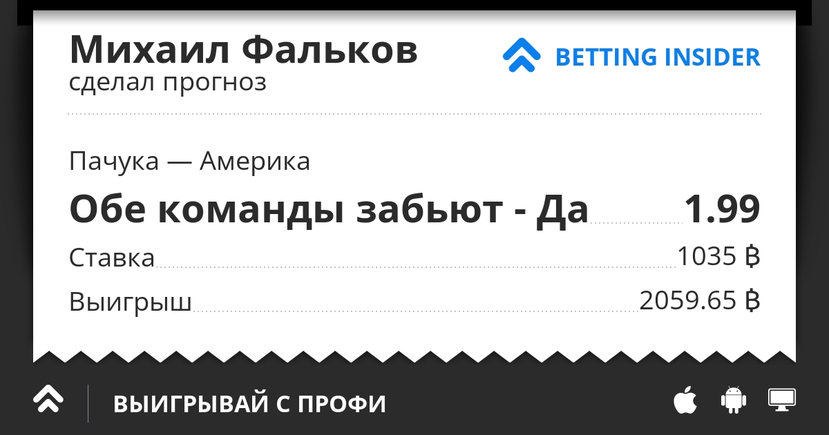 Сейчас счет 2-0. Ставка проводится по второму тайму Америка за 10 минут нанесла 7 ударов, 2 из которых в створ, я думаю не закончат они без забитого мяча с таким напором