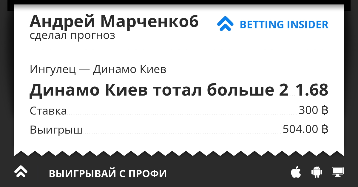 Ингулец пропускает всегда. Динамо нужно реабилитироваться за прошлую игру. Уверенная победа должна быть в два мяча. Для этого нужно забивать минимум 2)