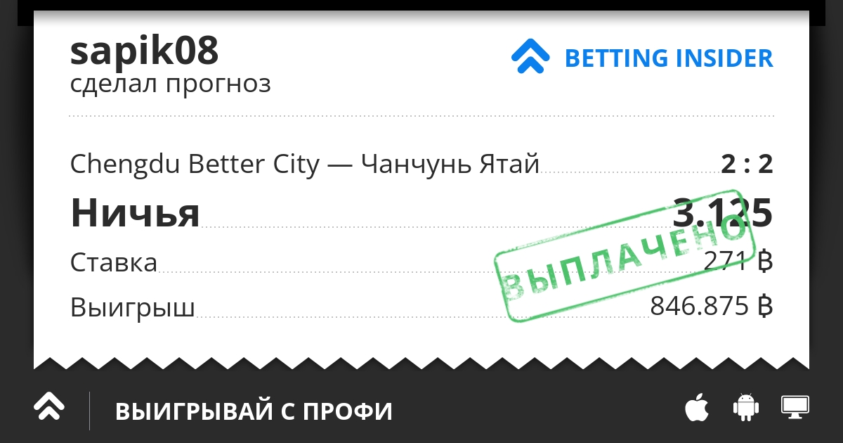Салют, любители сливать бабло! Очередная загадочная игра в Китайском матче. Ни за что бы не поставил на ничью на реальные деньги. Поэтому и сейчас вам говорю, не вестись на мою ставку, так как поставил только ради своего интереса. Игра пахнет либо ничьей, либо ОЗ, поэтому ответить конкретно я вам не могу. Двойственность тут какая-то... Поставил на ничью в первый раз, имейте ввиду.