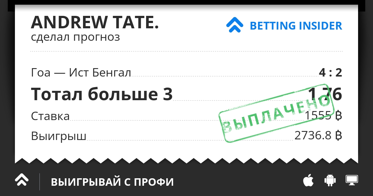 Тотал больше 2,5 голов 90 процентов Тотал меньше 4,5 голов 90 процентов Обе команд забьет 100 процентов