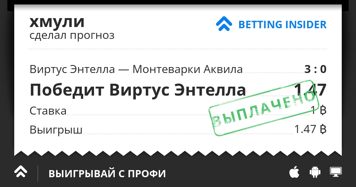 Энтелла после ничьей обязаны выигрывать. До первого места всего 8 очков чуть больше 10 туров.Смотрим матч и болеем за команду.