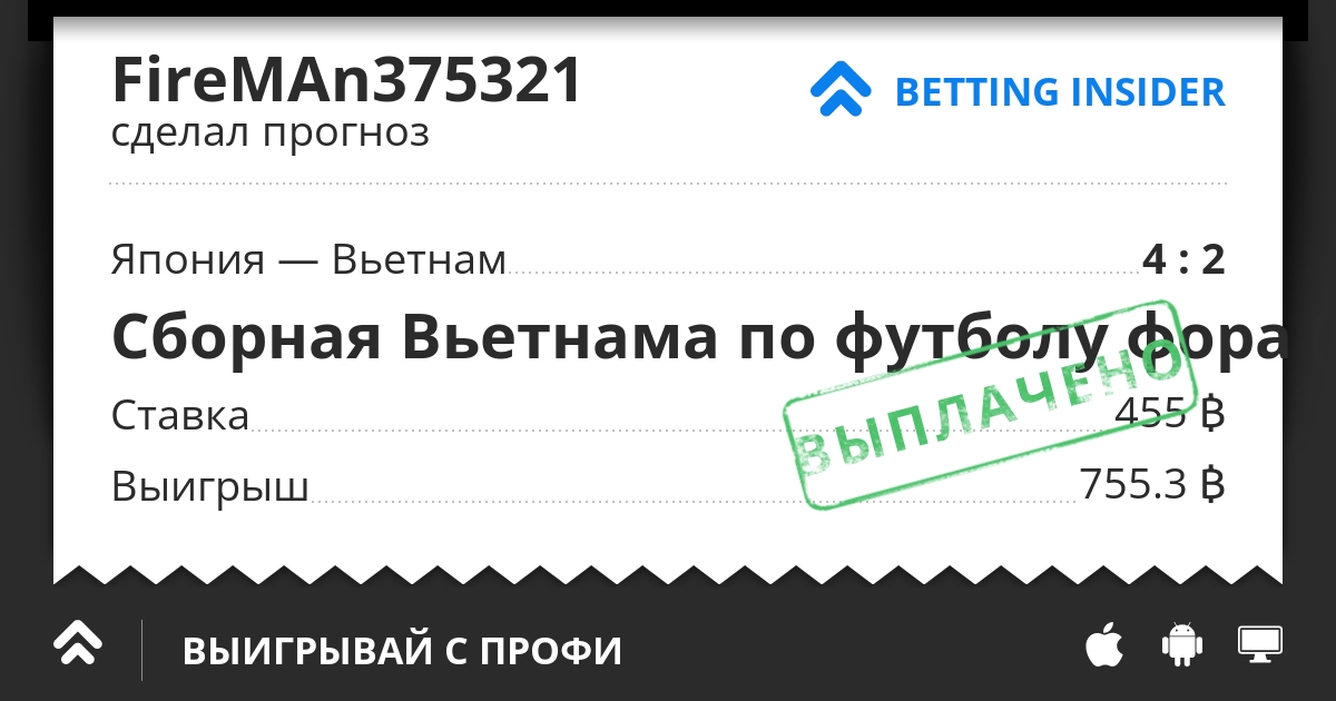 Япония 🇯🇵 не так сильна и Вьетнам очень добротная команда, тут явная недооценка. Также у лайве система предикативной аналитики показывает, что не будет много голов. Конечно есть погрешность, но с каждым обновлением системы она сокращается. Новый релиз запланирован на начала февраля 2024 года.