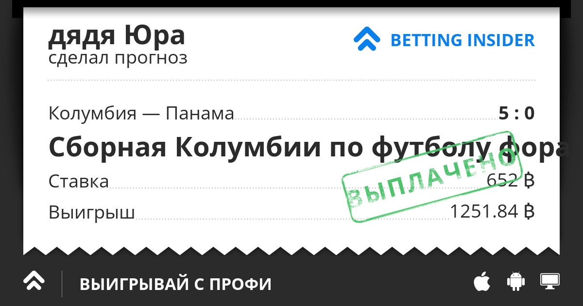 Поставить на победу колумбийцев с форой (-1.5) можно в букмекерских конторах с коэффициентом около 1.97. Последние две очные встречи «кофейщики» выиграли разгромно. С тех пор они стали сильнее, а вот панамцы остались на том же уровне. Моя ставка фора Колумбии (-1.5)