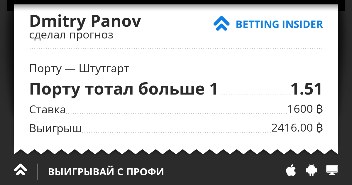 Ну что продолжим? Зайду сегодня на один гол Порту. В чемпионате отрыв есть, а ЛЧ проситься продолжить. В последних 16 матчах Порту дома неизменно забивали. Возьмём Штутгарт который тоже борется в чемпионате за выход в ЛЧ в следующем сезоне и думаю это приоритет для немцев, Порту важнее пройти дальше, а при первом результате думаю забивать обязаны. Штутгарт конечно покажет свой футбол , но думаю мотивация у хозяев больше чем у гостей.