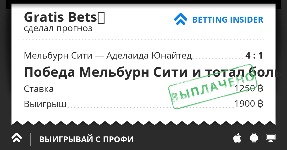 Мельбурн Сити сейчас в отличной форме, они выигрывал 4 из 5 своих последних матчей, а в большинстве своих этих забивали обе команды. Аделаида не может похвастаться такими же успешными результатами. Они выиграли только один матч из последних пяти и будут пытаться сегодня изменить ситуацию, но это будет не легко. В этой игре я могу с уверенность сказать, что Мельбурн безоговорочно будет доминировать и выиграет этот матч.