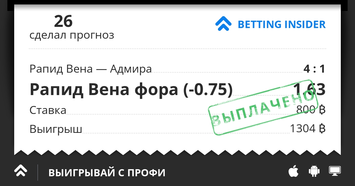⚽️🇦🇹 Бундеслига - 1 тур. Рапид - Адмира. Австрийский чемпионат снова в деле и в первом же туре хочу попытать свою удачу. Рапид прошлый сезон закончил на второй строчке не сумев навязать борьбы Зальцбургу , но все же по итогам сезона смотрелся прилично этим и заслужил звание вице чемпиона и получил право участия в квалификации Лиги Чемпионов. После завершения сезона они сыграли ещё 6 товарищеских игр и 1 в Лиге Чемпионов и во всех одержали победы . Сегодняшний соперник Адмира весь прошлый сезон провалил , закончив сезон на предпоследней строчке . Не думаю что за два месяца что-то грандиозно поменялось в этой команде . К тому же на протяжении 7 личных встреч к ряду Рапид берет верх над Адмирой. Ожидаю уверенной победы от хозяев ! Всем удачи !!