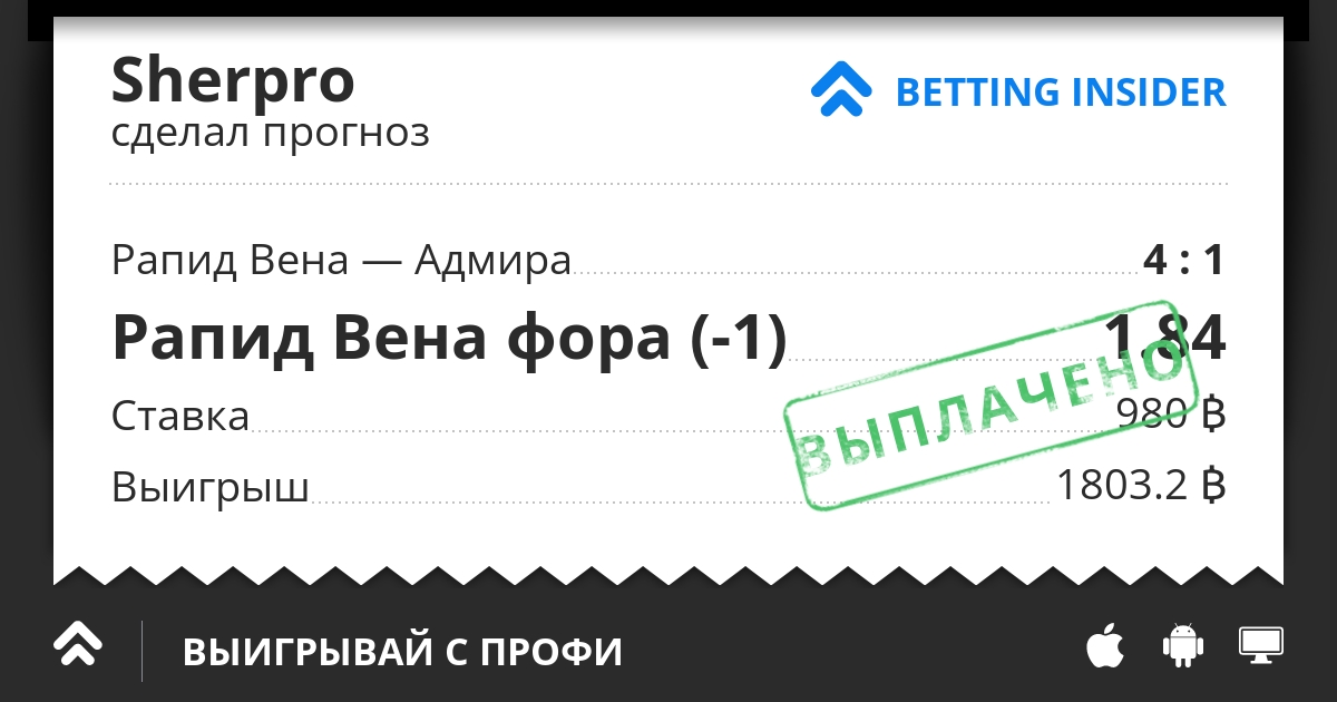 Адмира» провела ряд неплохих товарищеских матчей, плюс добилась разгромной победы в Кубке. Однако и «Рапид» в отличной форме. Команда успела пройти первый квалификационный раунд Лиги чемпионов, уничтожила своего оппонента в Кубке, и была крайне хорошо в товарищеских играх, одержав пять побед из пяти. Как ни крути, а по классу «Рапид» значительно выше «Адмиры», и это даже не обсуждается. Отмечаем также и существенное превосходство «Рапида» по последним очным встречам. Семь побед подряд, причем в шести случаях победа была с разницей минимум в два мяча, а в четырех случаях «Адмира» не избегала разгрома. Считаем, что и на этот раз «Рапид» одержит уверенную победу. Возможно, он не станет громить оппонента. Все-таки это только начало сезона, к тому же нужно беречь силы к Лиге чемпионов. Да и «Адмира» в товарищеских матчах показывала хорошую форму. Тем не менее, победа «Рапида» с форой (-1) напрашивается сама собой. Разница, как в индивидуальном мастерстве, так и в командной игре, слишком велика. Хозяева имеют все для того чтобы одержать здесь уверенную победу, и успешно начать новый сезон.