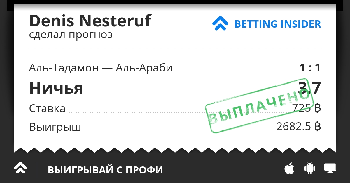 Прогноз Denis Nesteruf: Матч Аль-Тадамон — Аль-Араби