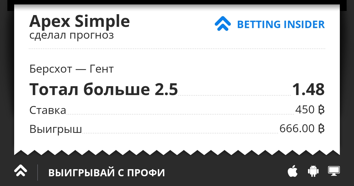 Футбол. Бельгия. Беерсхот примет Гент. Клубы середняки на данный момент, и сейчас Гент смотрится убедительнее, у него 3 победы и два поражения, а вот у Беерсхота 4 поражения причём подряд и 1 победа. Фаворит тут Гент, это и логично, да и в последней очной встрече он разгромил Беерсхот 5-1. Между собой эти клубы могут устроить перестрелку, даже находясь не в лучшей форме. Поэтому ожидаем моментов у ворот друг друга и реализаию.