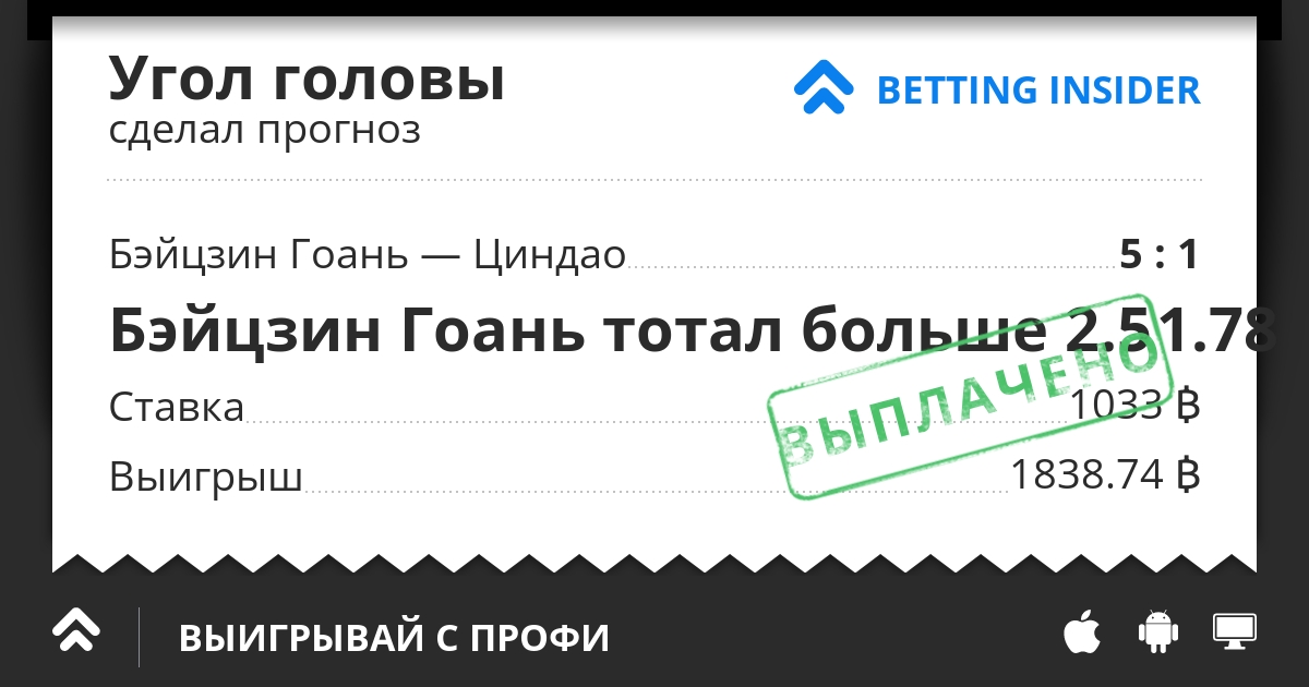 Хозяева замечательно проводят сезон - 7 побед, 4 ничьи и лишь 1 поражение от Шанхай СИПГ. Бэйцзин Гоань безусловно фаворит в этом матче и должны это продемонстрировать. Разумно будет поставить именно на них и на три гола в их исполнении, все таки они явно превосходят своего соперника.