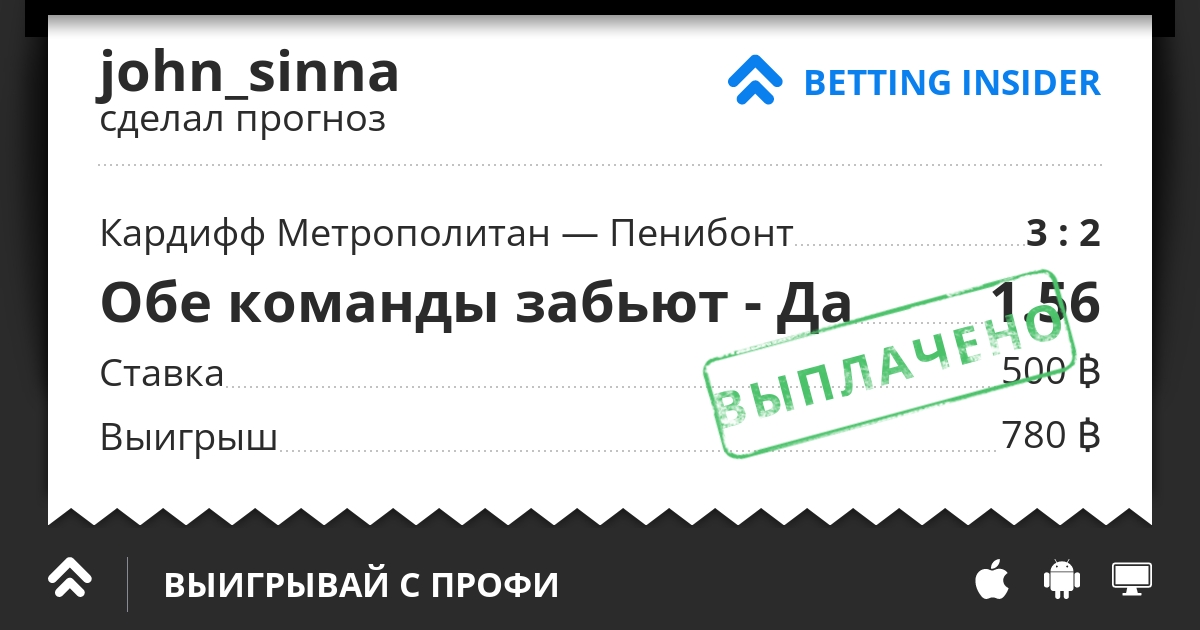 Ну тут в принципе и сам букмекер нам обо всем говорит и подсказывает так сказать ибо понятно что в такой игре между абсолютно равными соперниками в лице Кардифф Метрополитан и Пенибонт мы увидим размен, возможно даже что-то супер интересное сегодня будет и счет не просто какой то там 1-1 а что-то типа 2-2 или 2-3 в любую пользу либо хозяева либо гости