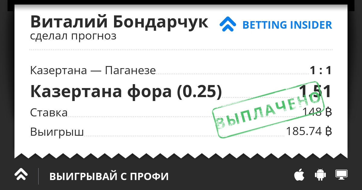 Прогноз Виталий Бондарчук: Матч Казертана — Паганезе