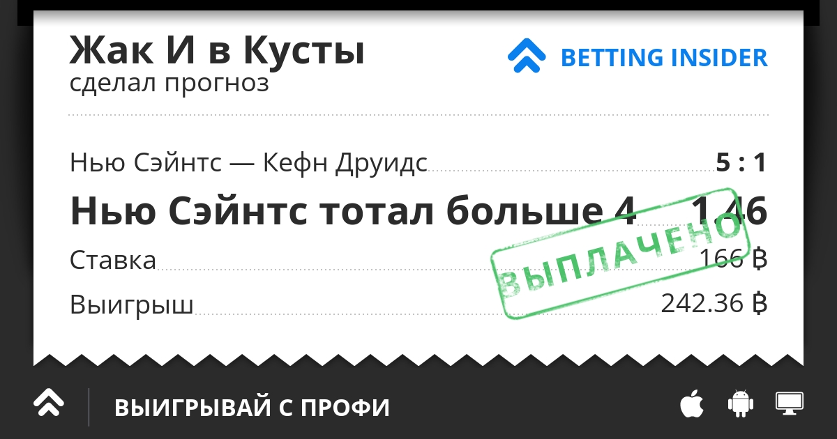 Нью сейнтс... и аутсайдер... Нью сейнтс в домашних играх минимум бьёт 3 мяча гости же за 19 игр пропустили 63 мяча... думаю исход положительный на лицо... не нужно никому говорить кто и сколько забьёт и кто сколько в этом матче может пропустить.Всем удачных ставок...
