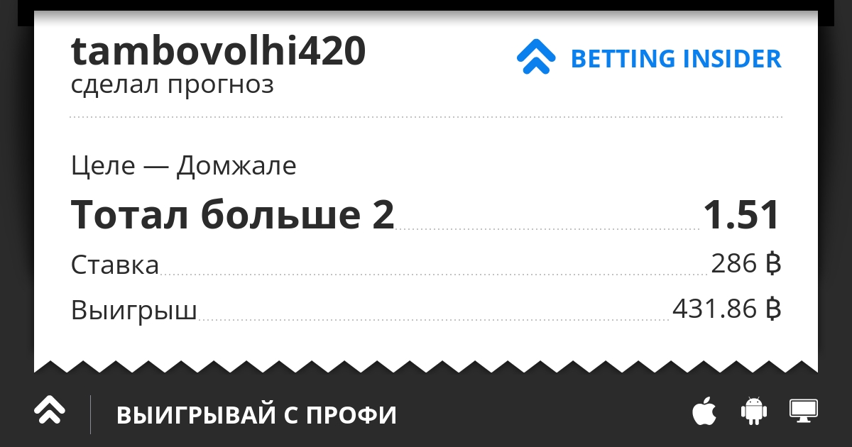 Если взять по 10 последних матчей команд, то тб 2 не прошло всего 2 раза. 2 раза из 20. Выглядит надёжно.