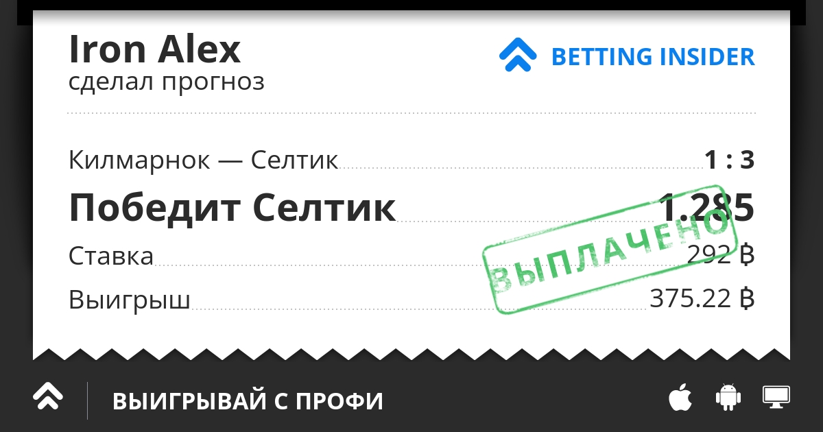 Килмарнок не должен побеждать ни при каких обстоятельствах. Команда не забивала. Команда не выигрывала. И это продолжалось все последние туры. Да, клуб отдохнул, должен был сделать работу над ошибками. Думаю, он в состоянии забить гол. А вот победить или просто забрать ничью - выше его сил. Селтик это Селтик. Клуб ведёт напряжённую борьбу за чемпионство и вряд ли потеряет очки с теми, кто ещё совсем недавно охотно их дарили всем подряд.