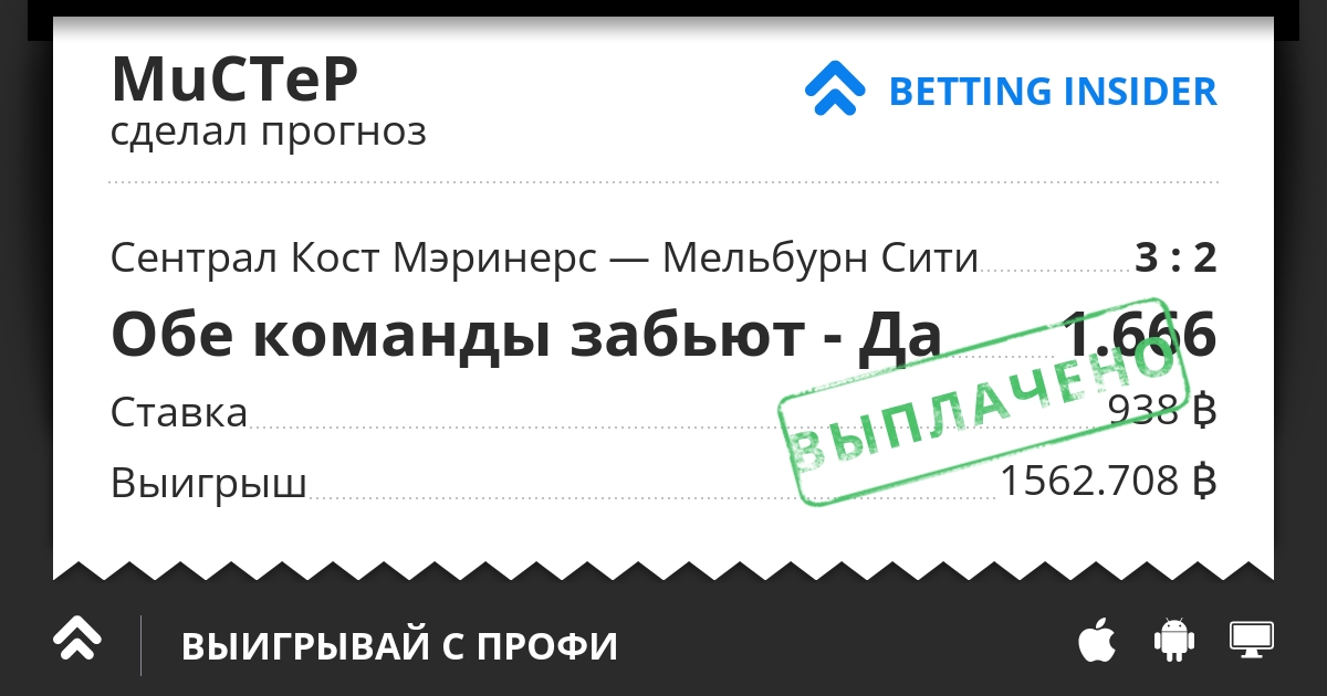 Уже писал прогноз на этот матч, где поделился мыслями о том, что думаю тут стоит ждать результативного футбола. Централ Кост Маринерс прыгнул выше головы в начале сезона, команда занимает второе место, хотя её реальный уровень это нижняя половина таблицы, но пока команда чередует победы с поражениями, очки копятся. Мельбурн Сити имеет огромную мотивацию перед этой встречей, всего одна победа позволит команде сделать гигантский прыжок с восьмого места на второе, подвинув тем самым своего сегодняшнего оппонента. Учитывая крайную нестабильность команд, можно предположить что сегодня мы увидим как минимум обмен голами, ведь в начале сезона эти команды испытывают приличные трудности с сохранением своих ворот.