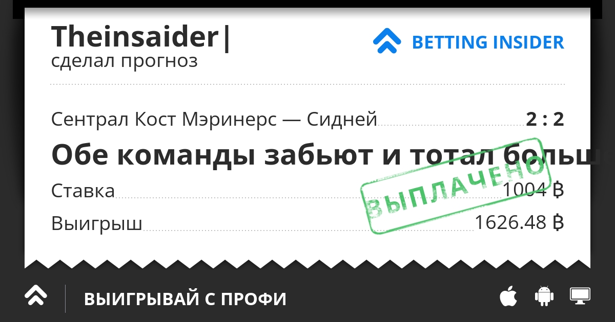 🖋Нахождение среди лидеров А-Лига после 17 матчей является неплохим достижением. Сентрал Кост одержав девять побед, сведя три матча вничью и потерпев пять поражений. В данное время команда занимает вторую позицию в чемпионате с 30 набранными очками. 🖋Семь побед, семь ничьих и четыре поражения - с такими показателями Сидней находится на четвертой позиции в А-Лига после 20 матчей, и очевидно, что останавливаться на достигнутом этому клубу нельзя. Команда не проигрывает на протяжении четырех матчей (две победы и два поражения). 📊ИТОГ: Проанализировав большое количество статистических данных, я увидел, что матч может сложится по самому неожиданному сценарию. Но в чем я уверен процентов на 90, так это в том, что оба коллектива в этом матче смогут забить. На это и поставим.