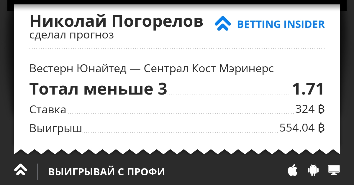 Последний матч на сегодня! Я согласен с котировкой, которая выставлена на матч. Победителя определить сложно и, скорее, это будет просто борьба за инициативу, без острой игры в атаке. Вестерн попал в яму и найти просвет, даже с последней командой Лиги, будет не так просто. В принципе, оба коллектива не отличаются сверхзабивной тактикой: Вестерн 7 - ой по этому показателю, а Централ Кост стабилен во всем - он последний. Следовательно, ожидать голов от коллективов не приходится.