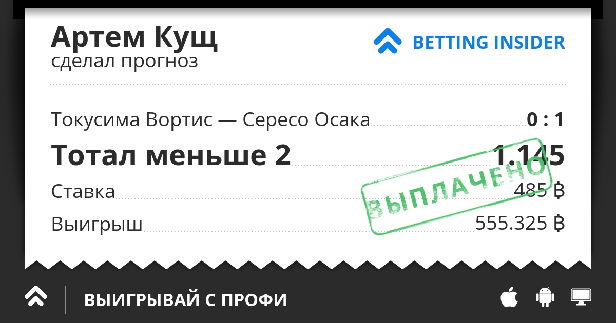 Настало время подытожить все вышеизложенное. Текущая форма команд, несмотря на детали, которые могли бы спутать, все же не оставляет много шансов на сенсацию в этом матче. Поэтому в этой игре мы не ждем неожиданного результата. В связи с этим выбрали для вас вариант ставки с высоким коэффициентом и большой вероятностью прохода: