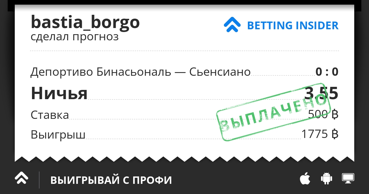 Очень странный матч и очень странные коэффициенты на этот матч, Депортиво Бинасбонал были лидерами в прошлом сезоне в высшей лиги чемпионата Перу и в новом сезоне на старте до пандемии ударно начали и шли в лидерах, но случился Ковид-19 и команда как подменили, хотя вроде ключевые игроки из команды не уходили. В общем не думаю что Бинасьонал проиграют сегодня новичкам этого сезона Сьенсиано, хотя бы вничью должны сыграть
