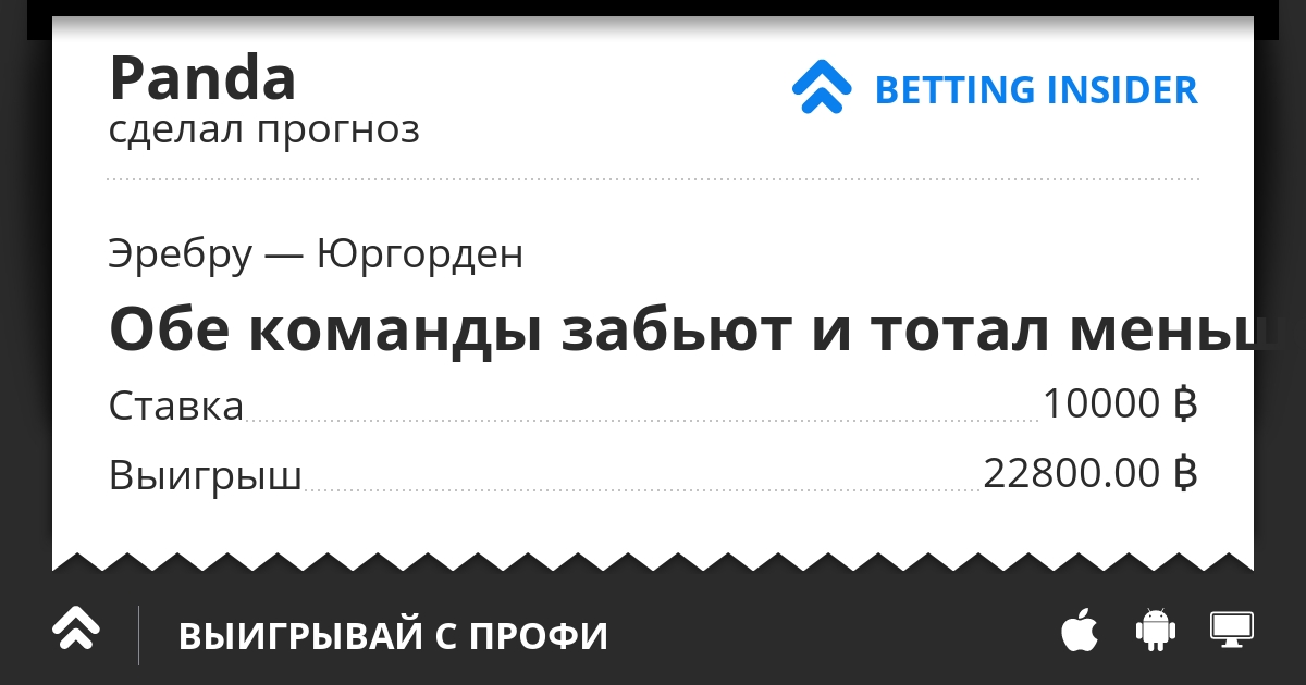 Юргорден тут безусловно фаворит. Но не сказать, что чемпион сейчас играет на своем уровне. В пяти выездных играх Юргорден не пропустил только в одной - С АИКом, который сейчас просто ужасен и проигрывает всем подряд. Эребру забивает почти в каждом матче. Думаю, не совсем слаженную оборону чемпиона удастся преодолеть и один гол да забить. Гости явно не собираются этот матч сливать и забьют 1-2 гола. Мой прогноз 1:1 или 1:2. Немного стаховочки и получается вот такая ставка.