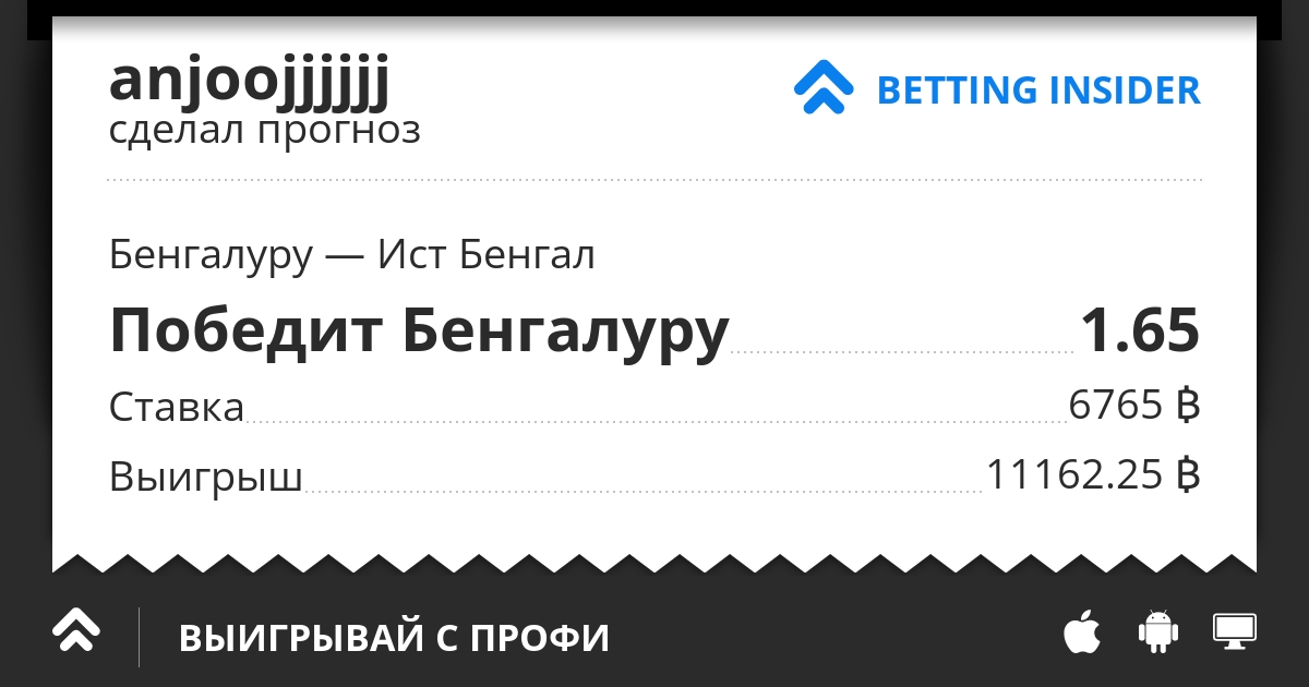 На данный момент Ист Бенгал не одержал ни одной победы в Суперлиге и занимает последнее место в чемпионате Индии, имеет два поражения и две ничьи на выезде, пропускает больше чем забивает. Бенгалуру показывает результативную игру на домашнем поле, полагаю если хозяева не засушат счет то должны побеждать. Полагаю что коэффициент на победу Бенгалора еще просядет, надо брать.