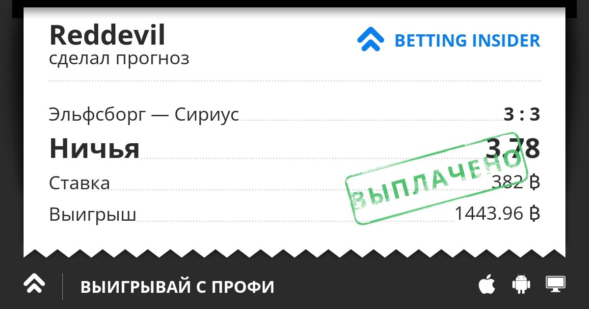 Рассмотрим обычную статистику. В среднем в шведской лиге вничью играют в 35% случаев. Эльфсборг дома сыграл вничью в 3 из 5 игр(60%,выше среднего в лиге и выше требуемых 28%) Сириус в гостях сыграл вничью в 2 из 5 игр(40%, также выше среднего в лиге и выше нужных 28%)
