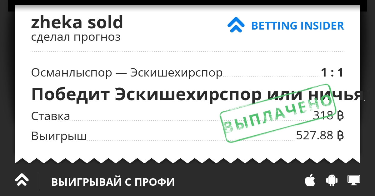 Вижу сегодня только один матч который реально может зайти. встречаются в чемипионате турции два низа команда гостей занимает последние место , а команда хозяев практически предпоследние. суть в тм что между собой сколько не играли соперни выигрываала команда эскишерспор. тут думаю тот же исход будет , так как команде гостей нужно выбирать из последнего метса и брать очки как не у Османлыспорт. поэтому тут считаю каак минимум ничья или победа гостей. всем уачи.