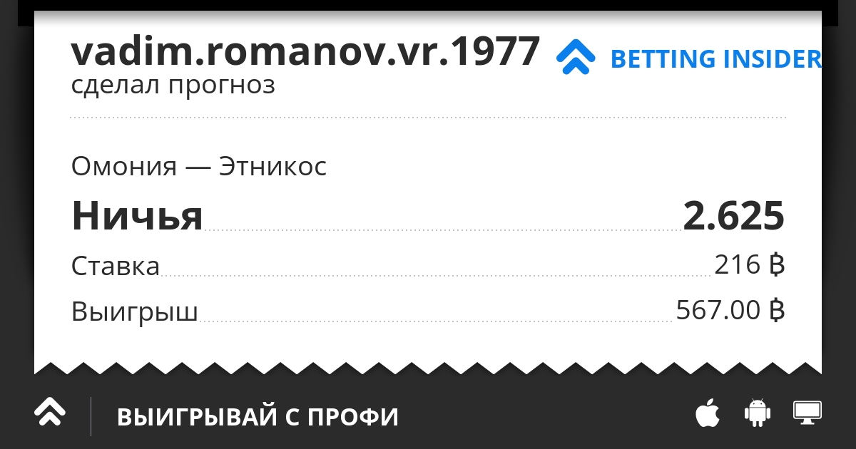 Прогноз vadim.romanov.vr.1977: Матч Омония — Этникос