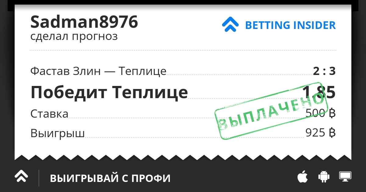 Команда Злин, уже 3 игры не забивает, так как в это время Теплице набрала нормальную форму серии побед нет, но уступали они по силе хорошим командам. И Собственно не вижу причин, чтобы команда не выиграла в гостях. К тому же в очных встречах уже серия 7 игр подряд, хозяева выигрывают, и думаю как раз день настал, когда эта серия прервется.