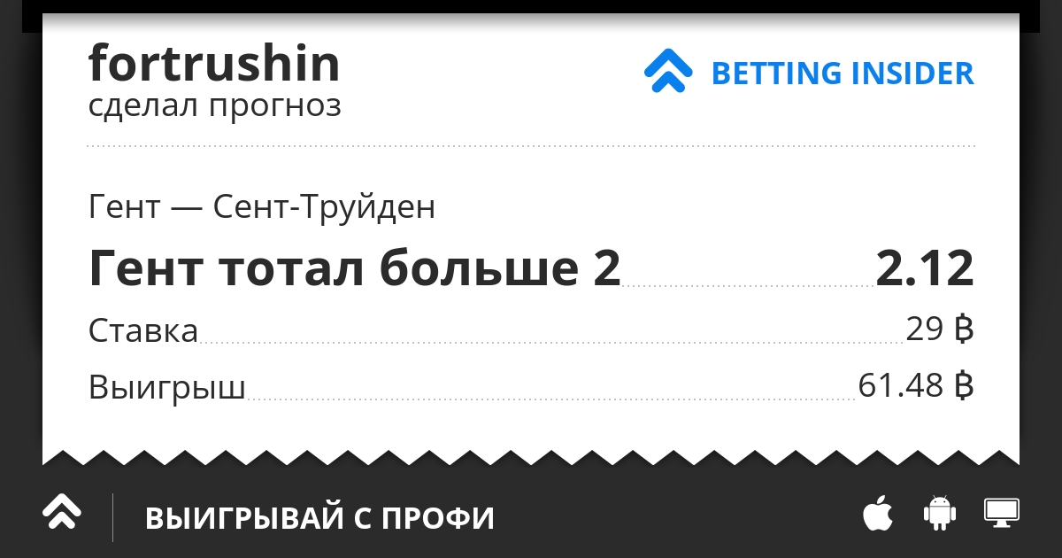 Сент Труйден сам недавно выбрался из болота со сменой тренера, и сейчас на неплохой серии в 5 побед из 7ми последних матчей. Но перед Гентом дома неожиданно желто-синие уступили Мускрону дома 0-2, что может стать предтечей спада, тем более особой глубиной состава они не обладают.