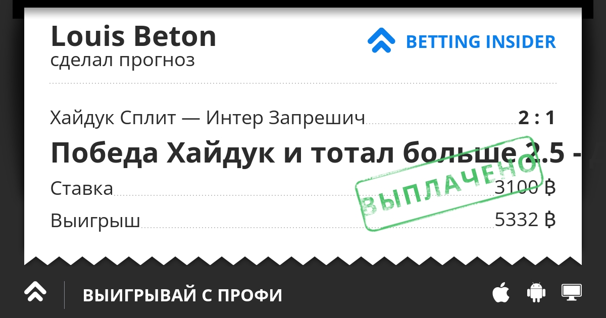 Ставка должна пройти очень уверенно при классической игре Хайдук 🤞