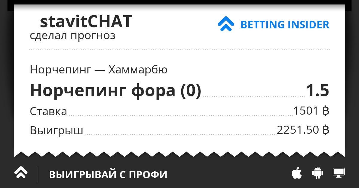 • В этой паре тенденция, по которой принимающая сторона как минимум не проигрывает, сохраниться. Рискнем, несмотря на неплохую форму Хаммарбю, поставить на успех на своем поле Норрчепинга. ********** форой 0.