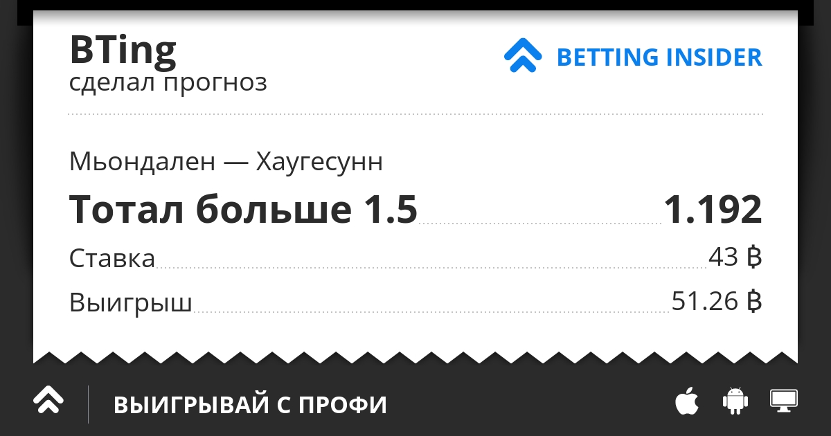 Норвегия.Мьондален - Хаугесунн.Ставка ТБ1.5