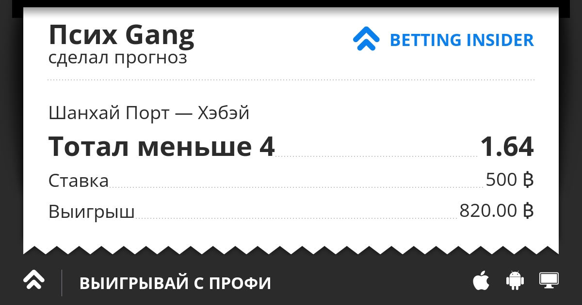 Теперь к ставке , решил я выбрать Тотал 4 меньше , потому что хоть и Хэбэй КФФК аутсайдер в этом матче , но обороняются они не хуже Шанхай СИПГ , да и сам по себе Шанхай СИПГ любит катать мяч , тем более Тотал 4 меньше проходил у них в 5-ти последних встреч между ними .