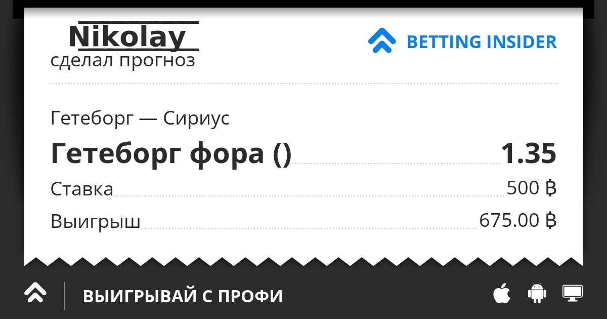Швеция. Высшая лига.7 тур чемпионата Швеции.Гётербург и Сириус.Гётербург проиграл 1 матч с момента старта чемпионата и 4 ничьих. Дома одно поражение 1 победы и 1 ничья.Гётербург в крайних матчах играет осторожено в обороне. 5 из 6 встреч на тотал меньше 3,5.Сириус хоть и находятся в турнирной таблице выше своего соперника ну с победами пока не очень. Три поражения подряд у гостей.Сириус пропускает на протяжении 4 матчей.В трех крайних матчах в гостях Сириус смог забить и пропустить.Гётеборг в среднем забивает 1 гола за игру, пропускает 0.8. Сириус забивает 1.2, пропускает 1.3В очном противостояние в прошлом году две встречи остались за хозяевами.У гостей не сыграют игроки в линии защиты.Думаю что хозяева окажутся сильнее своего соперника в этом матче. Считаю что Гётербург не проиграет и будет меньше 3,5 голов