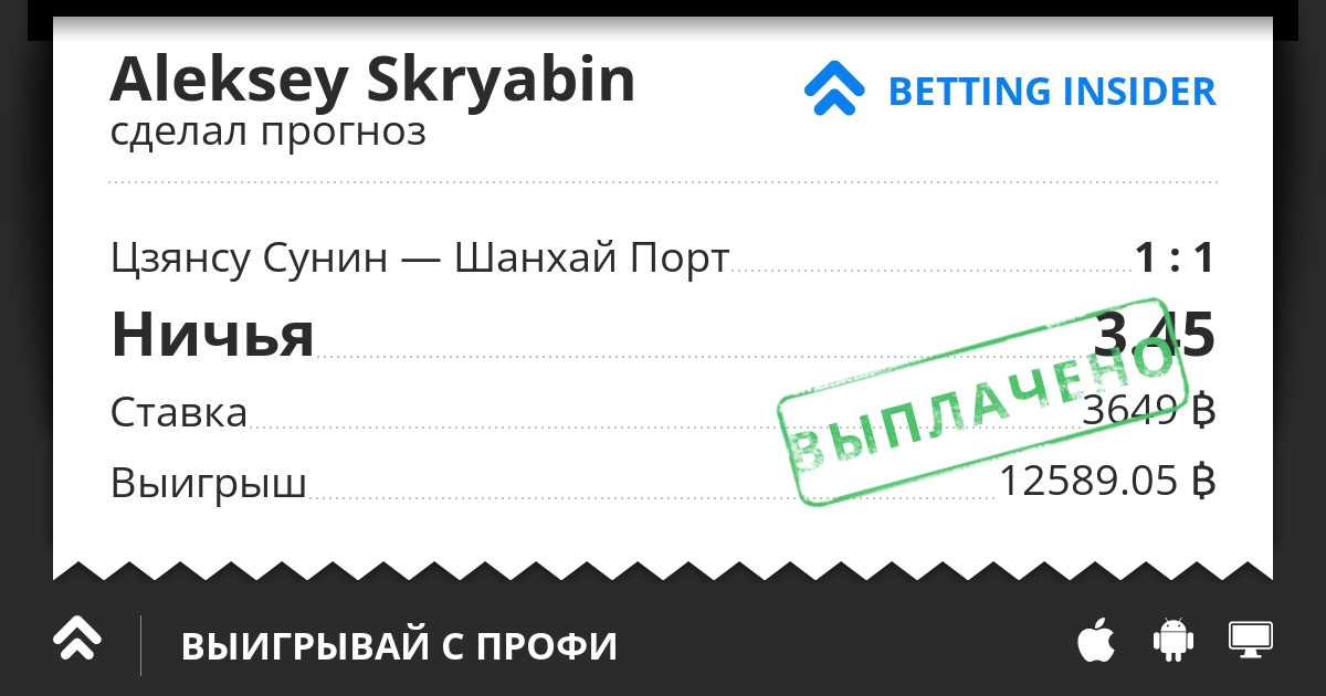 Прогноз Aleksey Skryabin: Матч Цзянсу Сунин — Шанхай Порт