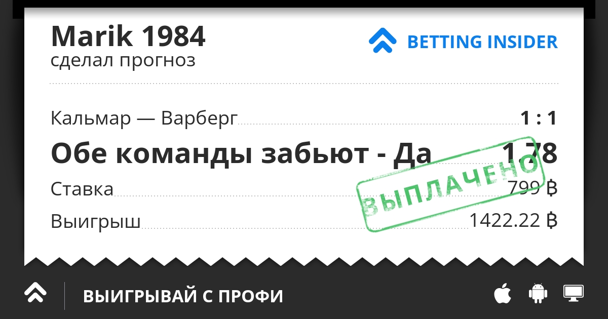 В этой игре хотелось бы обратить внимание на обмен голами хотя бы единожды за встречу. Кальмар, несмотря на свое низкое место в турнирной таблице, практически в каждом матче поражает ворота соперника, как минимум 1 раз. Так, в крайних одиннадцати поединках Кальмар лишь в трёх встречах не сумел поразить ворота оппонента. А в последних пяти - лишь однажды. И клубом, который засушил Кальмар, оказался 1 из лидеров лиги - Норрчепинг. Варберг в крайних четырнадцати поединках лишь в двух матчах не сумел отличиться в ворота противника. Одним из этих коллективов был все тот же Норрчепинг. Кальмар, поскольку играет дома, в хозяйских поединках также имеет, чуть ли не в каждой встрече, минимум 1 забитый в ворота соперника мяч. Так, в крайних восемнадцати домашних встречах Кальмар не смог забить в ворота оппонента хотя бы 1 мяч лишь в трёх случаях. Ну, а Варберг, со своей стороны, не забил, играя на выезде, в ворота соперника лишь в четырех случаях из крайних двадцати четырех. Не исключаю, что игра пройдет открыто с немалым количеством голов в обои ворота, но, что действительно я ожидаю от этого противостояния - это хотя бы единичный обмен голами.