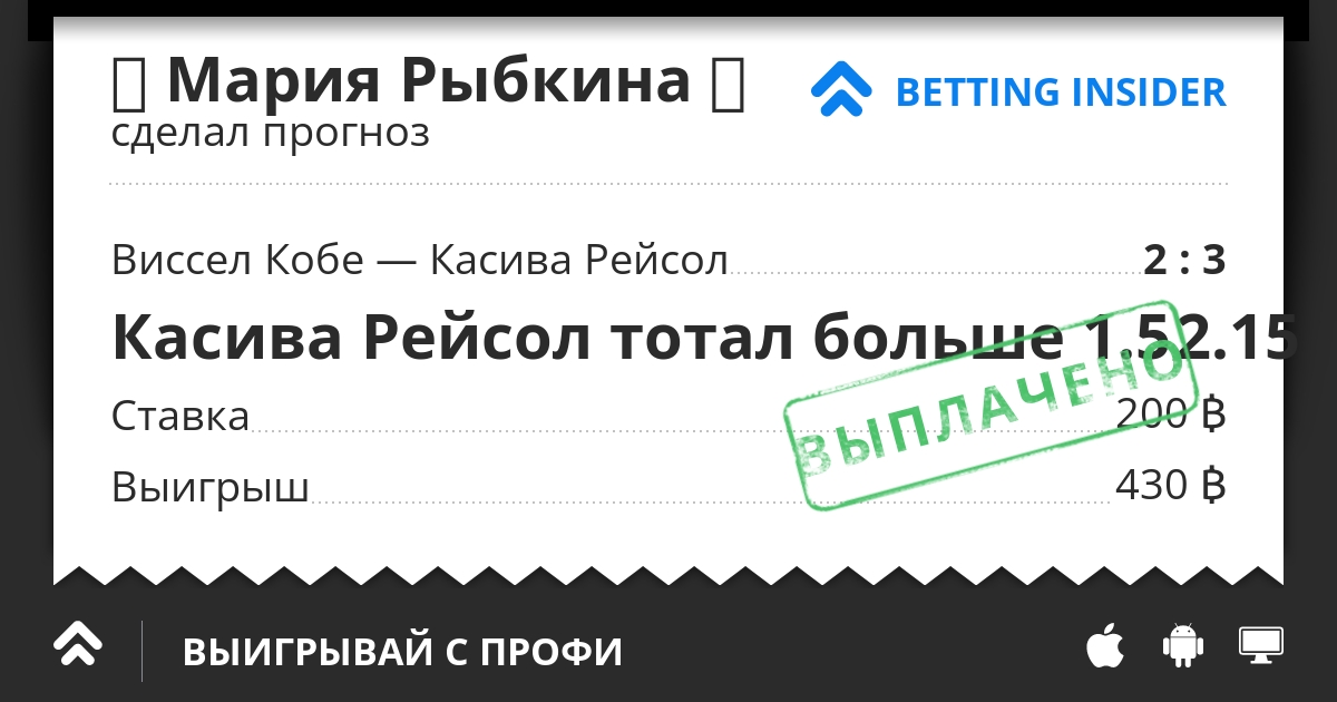 А никто и не говорит, что это будет- легко сделать! Более того, это- очень сложно! Однако же "Касива"- самая забивающая команда чемпионата, после "Кавасаки". На её счету- 21 мяч, после 19 матчей. Что вообщем-то0 соответствует ставке. И уж по крайней мере, такому коэффициенту- так уж точно. Да и игра в защите, команды "Кобе", в этом сезоне- вызывает вопросы. После 10 сыгранных матчей- 14 пропущенных мячей. Что как-то многовато для одной из лучших команд. Ещё хуже в этом сезоне, "Кобе" играет- в родных стенах. В 5 играх- 3 поражения, 1 ничья и 1 победа. При этом пропущено- 8 мячей. А это, уже составляет- 1.8 мяча, в среднем, за 1 игру. Так что... Я больше- не согласен, с предложенным коэффициентом и считаю, что "Касива", вполне может забить- 2 мяча. А больше- время покажет!