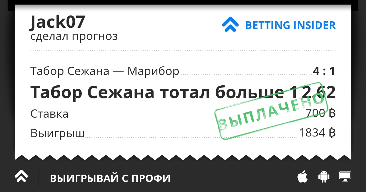 Марибор на выезде пропускает регулярно (в 13 из 15 матчей они пропускали). Табор Сежана на своем поле старается играть в атаку (7 побед за 15 матчей и только 4 поражения), старается забивать (в среднем по 1.40 гола за игру у них выходит). Поэтому я вижу смысл вновь ждать голов от Табора и, возможно, они забьют даже не раз.
