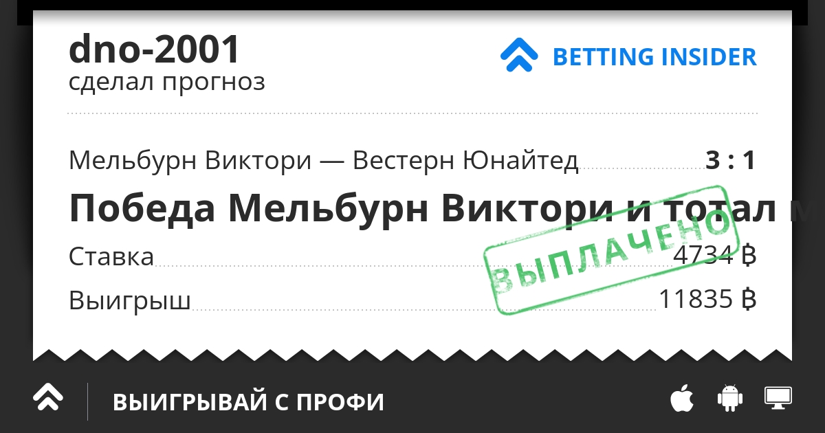 Вряд ли команды сегодня прорвёт и они покажут зрелищный футбол с кучей голов. Вестерн Юнайтед шесть последних матчей заканчивал со счётом 1:0 и которые они чередуют победы с поражениями как два через один. Во первых две победы уже прошли, начал черед поражения, во вторых эти команды играли в первом туре и Мельбурн выиграл 1:0 на выезде. Теперь матч на родном стадионе и Вестерн, со своим оборонительным стилем, не устоит