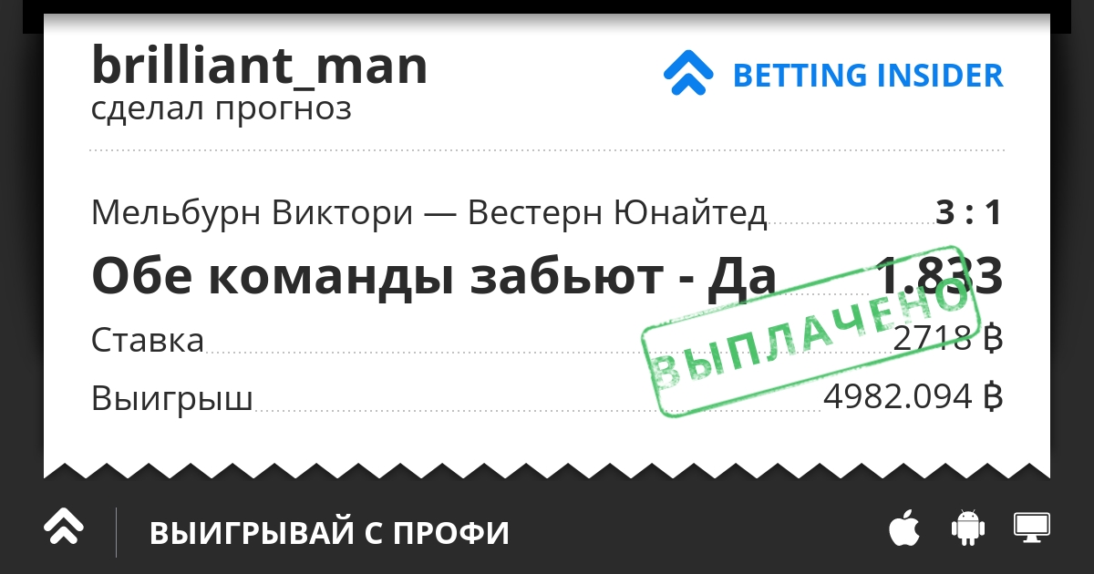 Есть предчувствие что сам Вестерн Юнайтед уже устал от счета 1-0, для чемпионата Австралии это вообще аномальная серия на самом деле постоянно играть на тотал меньше 1,5 за игру и с одинаковым счетом постоянно заканчивать игры 1-0, так что пора серию прикрывать мне кажется, тем более соперник Мельбурн Виктори точно сидеть в обороне не будет всё таки