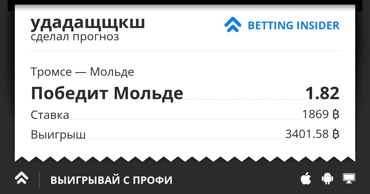 🇧🇻 Доброго времени суток! Начнем с небольшого представления команд. Тромсе в этом году является новичком лиги, но это не совсем так, ведь по большому счету это команда-лифтер. Мольде же является типичным флагманом норвежского футбола, ранее на протяжении долгих лет соперничали с Русенборгом за пальму первенства, но в прошлом году чемпионом сумел уверенно стать дерзкий Буде Глимт, эту команду я упомянул не просто так. В первом туре Тромсе встречался именно с действующим чемпионом и уступил 3-0, исходя из этого думаю Мольде не испытает серьезных проблем, ведь этот клуб ставит перед собой самые высокие задачи что в принципе и доказало их участие в еврокубковой компании. В личных встречах уверенный перевес в пользу гостей, все-таки думаю "новичок" дрогнет в первых двух турах в матчах с фаворитами. Возможно сыграет и ф-1, но жадничать не стану.