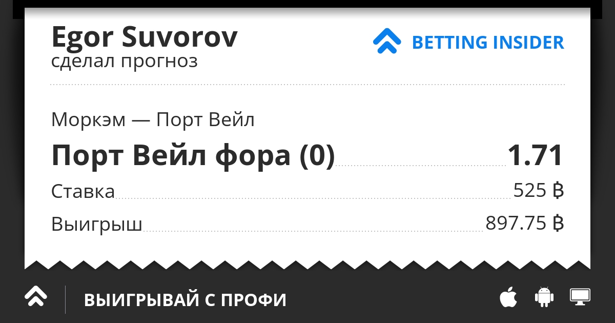 Моркэм принимает Порт Вэйл в рамках 4-го чемпионата Англии. И хозяева и гости сейчас не в лучших кондициях. Но давайте взглянем на таблицу: Порт Вэйл идёт на 10 месте, а Моркэм всего лишь на 23. В личных противостояниях нельзя выявить чьё-либо преимущество, команды идут ноздря в ноздрю. Что-то мне подсказывает, что Порт Вэйл найдёт в себе силы как минимум не проиграть в сегодняшнем матче.
