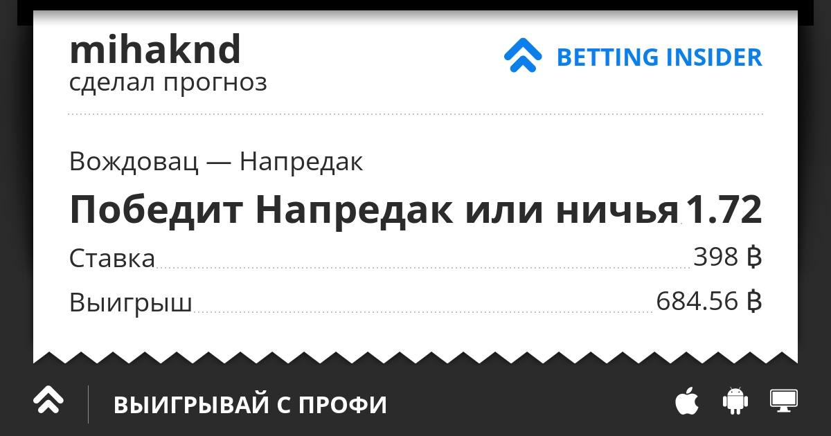 Итак, перед нами Чемпионат Сербии. Играют команды Вождовац против Напредак. Программа отМашка советует взять ставку х2 с коэффициентом 1.72. Эту ставку она нашла по стратегии непроигрыш аута. Расчитала проходимость и получила...80%. Не может быть, скажите Вы. Напредак сама слабая команда чемпионата. Даже посмотрел, многие ставят что эта команда не забъет ни одного гола! А тут...не проиграет. Я тоже не согласен с роботом, но послушаюсь. Частенько отМашка бывает права. А сам бы своей головой я бы давно слил все деньги...Смотрим. Ставим не больше 1% от банка! Чтобы оставаться на плаву, не рекомендуется брать коэффициент менее 1,6. Ловите коэффициент в лайве. Как правило, он изменяется в широком диапазоне, что можно использовать для получения прибыли. С уважением Михаил.