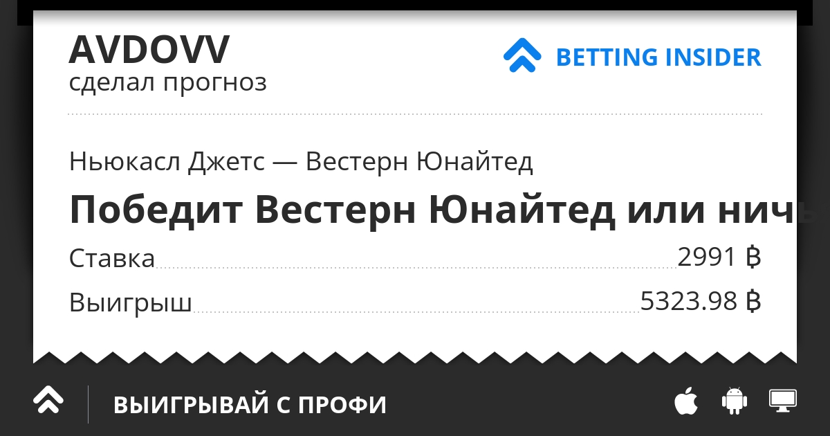 Не могу понять почему такое большое расхождение в коэффициентах , ведь класс команд не особо такой уж разный , а как показали последнии матчи обеих команд , так по мне Вестерн даже по симпатичнее и может я удивил многих этой ставкой, но это ещё не всё, я ещё поставил и победу и даже попробовал фору -1 почему то мне так видеться этот матч , предпологаю два гола в матче 0-1 0-2 , уж много гости пропускают но может быть максимально 1-2 , много ставить не буду но проверить хочется. Всем своей Удачи 🏆