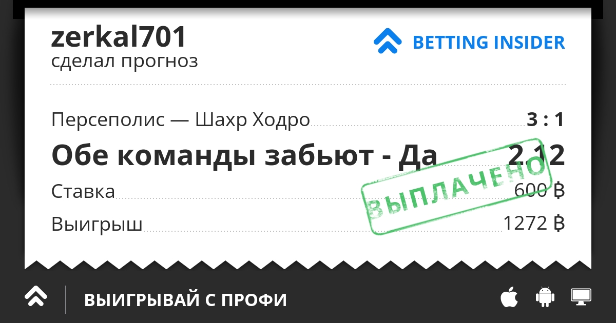 * сегодня уже состоялось 4 матча в Иране и по традиции лишь в 1 матче из 4 была пробита ставка обе забьют, примечательно что в одном из самых неожиданных матчей, где был яркий фаворит который пропустил на 91 минуте с пенальти. Сейчас играет Персеполис, который играет на 2 фронта, еще в их местной ЛЧ и разрываться тяжело для подобных команд, они явно все силы на старт игры отдали и забили 2 мяча, в конце могут просесть, тем более Эстеглал который тоже играет на 2 фронта сегодня и вовсе аутсайдеру и новичку лиги слил 1-0, Персеполис конечно вряд ли повторит подвиг и потеряет очки, но в концовке начудить должны