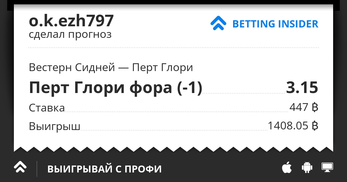 Всех православных С Крещением и нам сегодня выпал хороший подарок в виде очередной встречи Перта Глори с очередным соперником из Сиднея, но пока не с лидером А-лиги, а находящимся в довольно кризисном состоянии Уондерсом. Каких-либо предпосылок на то, что кризис прервется именно в этом матче я лично не вижу и свое поле команде Баббеля врядли поможет против разогнавшейся не на шутку машины Тони Поповича, кстати, на протяжении 5 лет возглавлявшего самый молодой клуб австралийской лиги и добишегося с ним довольно прекрасных результатов за довольно короткий срок, а теперь его подопечные из Перта разрывают все на своем пути. Полагаю, что и с Вестерн Уондерс особых проблем не возникнет. Повторюсь, но Баббелю пока отладить механизм своей команды не удается да и скамейка короче, чем у гостей, при чем, проблемы как в обороне, так и в атаке. Да и мотивация против пертурианцев ниже: те, провалив старт сезона, рвутся обратно на вершину, при чем, мощно и слаженно, а сегодняшняя встреча определяет следующую с Мельбурн Сити, от которых они и оттолкнулись месяц назад и победа в этом матче, при условии, конечно же, победы над Мельбурном, выводит на второе место, и это в ближайшей перспективе, тогда как при начавшейся довольно плотной суете вокруг попадания в плей-офф А-лиги такие короткие планы ребятам из Сиднея не светят. На основании всего можно просто поставить на победу Перта Глори, кэф довольно неплохой при данных обстоятельствах. Если осторожно, то Х2+ТБ1.5 совсем спокойно, на мой взгляд. Чтобы с одной ставки выжать побольше с определенной долей риска (не забываем: мяч круглый, а в Австралии пожары), то Ф2(-1) - моя ставка, но рассматривал и вариант первых 2-х мячей за гостями - там кэф за 3 уходит, а за последние 5 матчей команда пропустила лишь 2 мяча да и то в одном матче, за что сопернику ответила шестью! Все! Всем удачи и С Праздником!