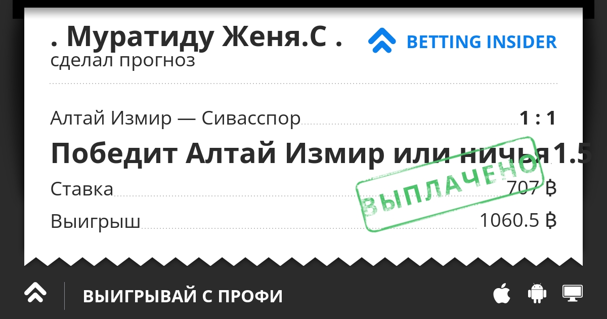 Прогноз . Муратиду Женя.С .: Матч Алтай Измир — Сивасспор